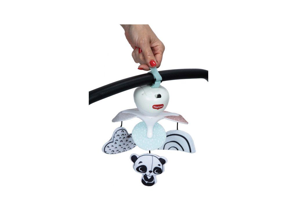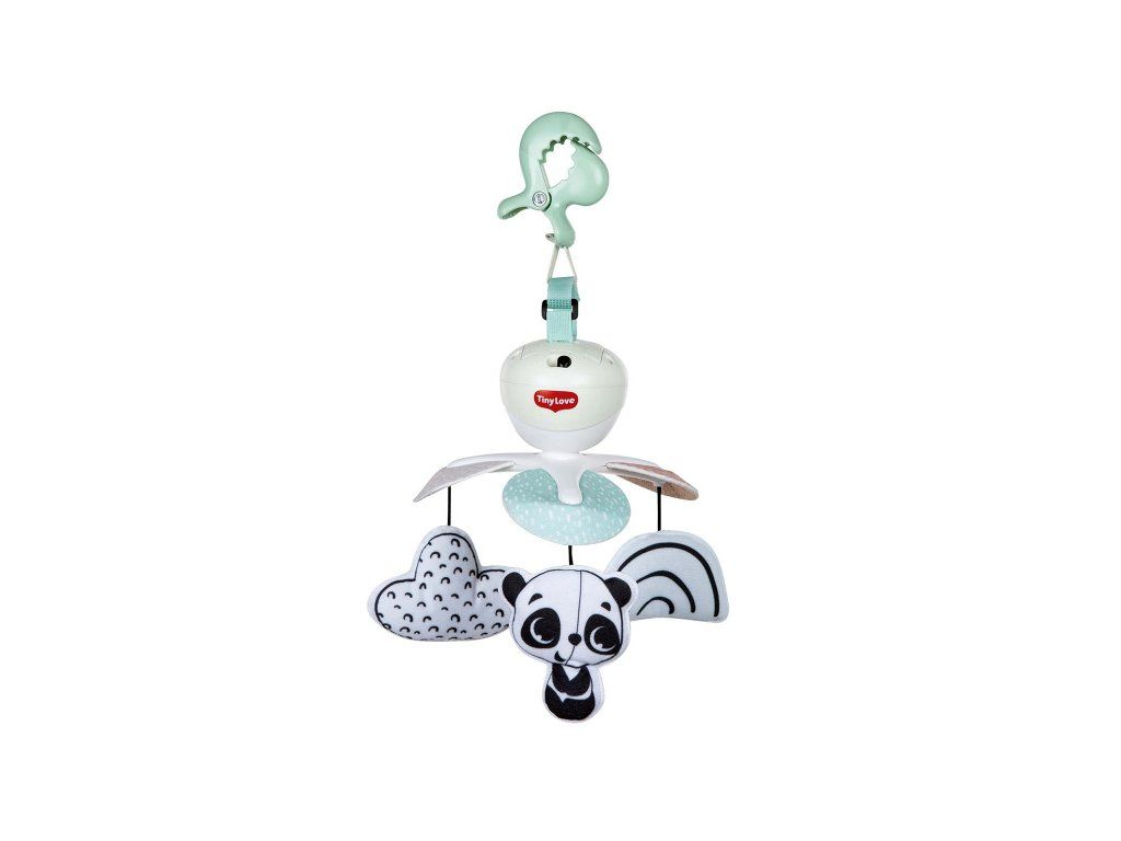 Hudební kolotoč Tiny Love hraje až 30 minut 5 různých melodií. Pozornost dítěte upoutají hračky, které se otáčejí, ve vysoce kontrastním černobílém provedení. Kolotoč nabízí tři různé způsoby uchycení: univerzální úchyt je vhodný např. na cestovní postýlku, klip je ideální pro uchycení na kočárek, pásek se suchým zipem umožňuje uchycení na autosedačku. Kolotoč tak vaše dítě zabaví kdekoli na cestách.