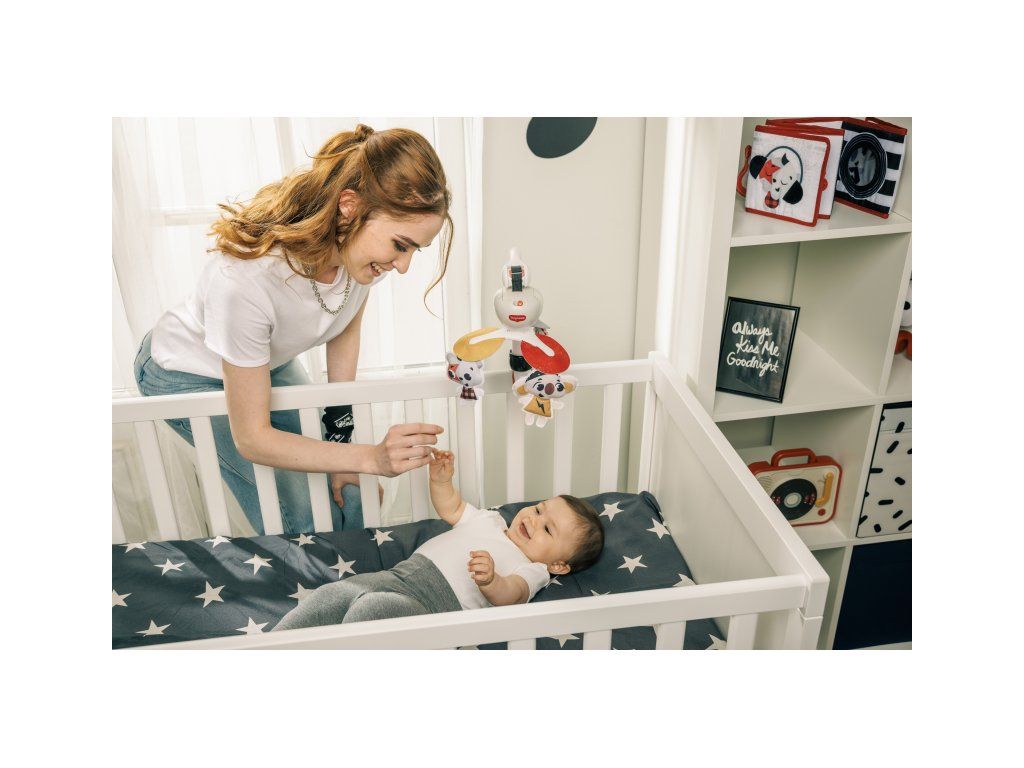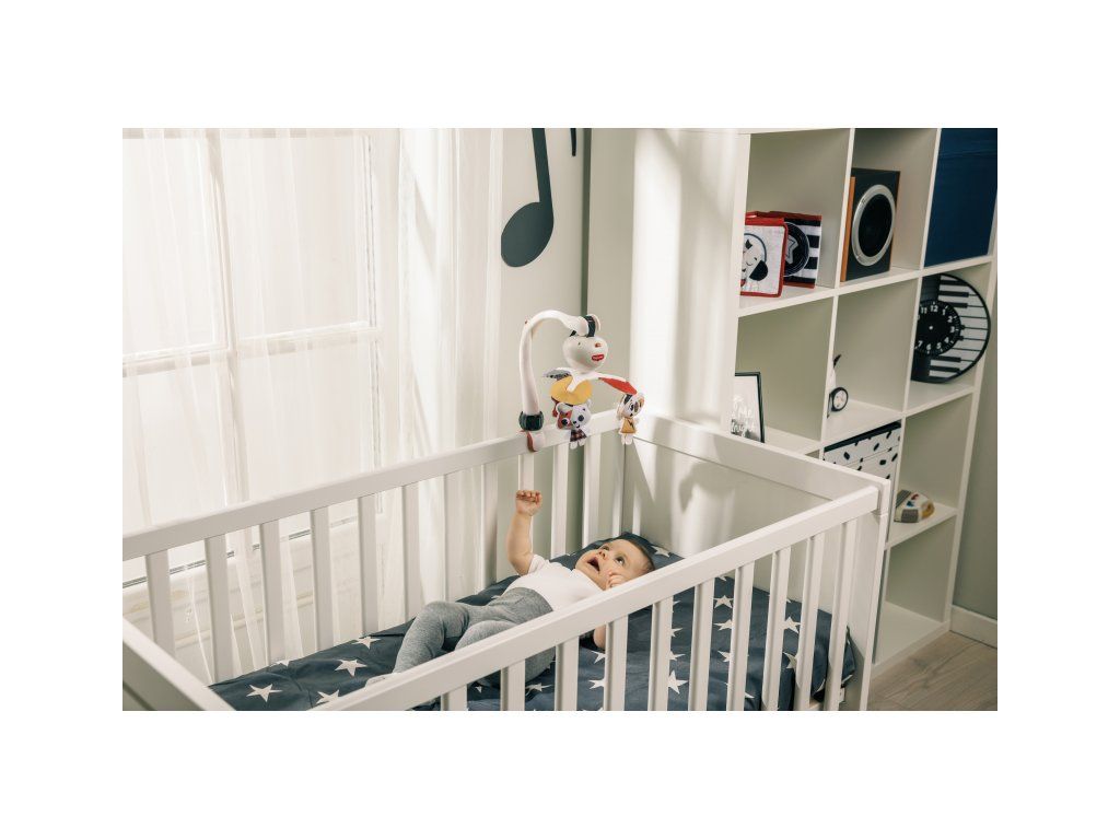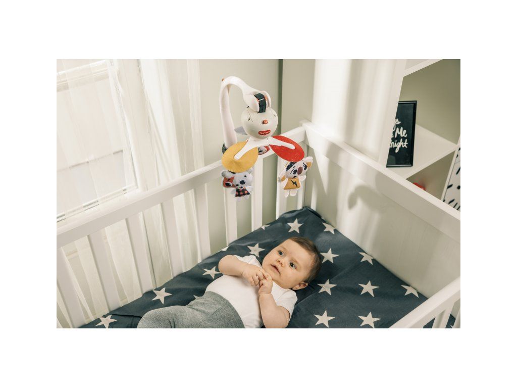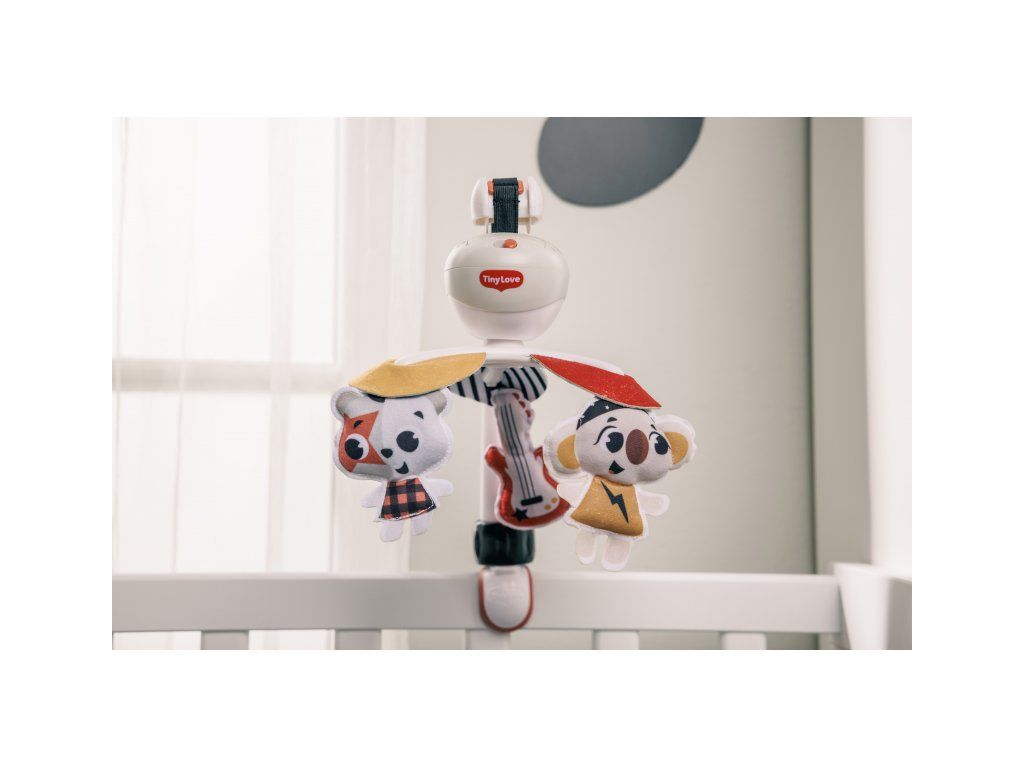 Hudební kolotoč Tiny Love hraje až 30 minut 5 různých melodií. Pozornost dítěte upoutají otáčející se hračky ve vysoce kontrastním barevném provedení. Kolotoč nabízí tři různé způsoby uchycení: univerzální úchyt je vhodný např. na cestovní postýlku, klip je ideální pro uchycení na kočárek, pásek se suchým zipem umožňuje uchycení na autosedačku. Kolotoč tak vaše dítě zabaví doma i kdekoli na cestách.