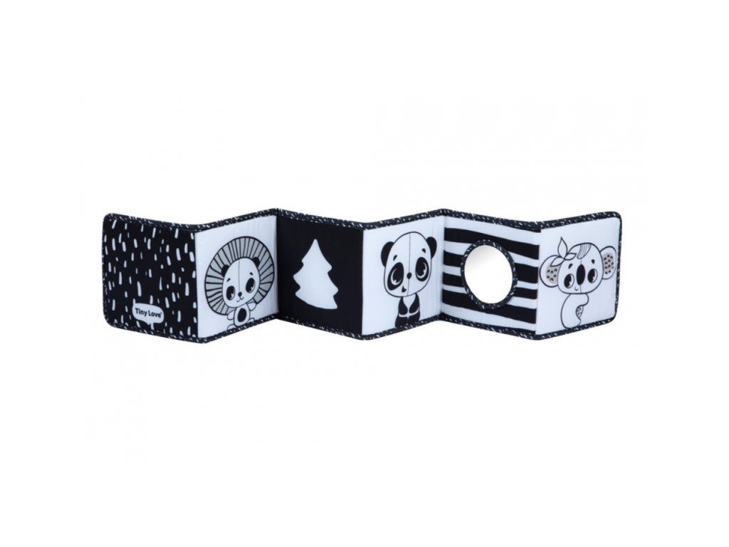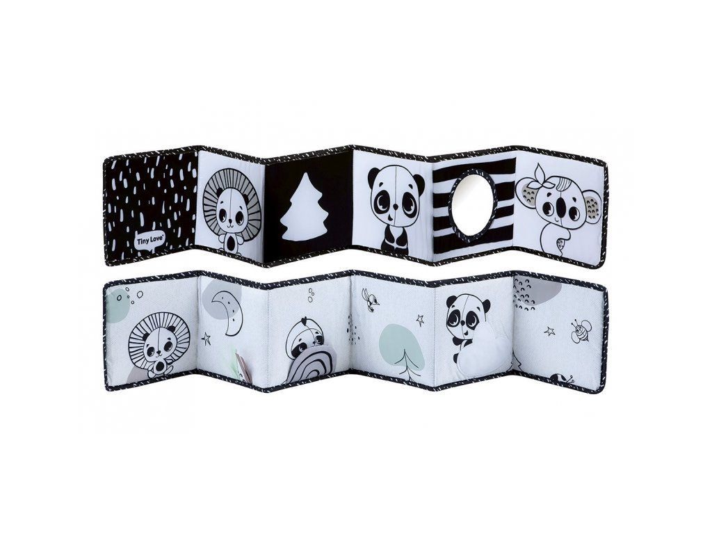 Oboustranná textilní knížka pro nejmenší Tiny Love je určená do kočárku, postýlky i na hrací deku.