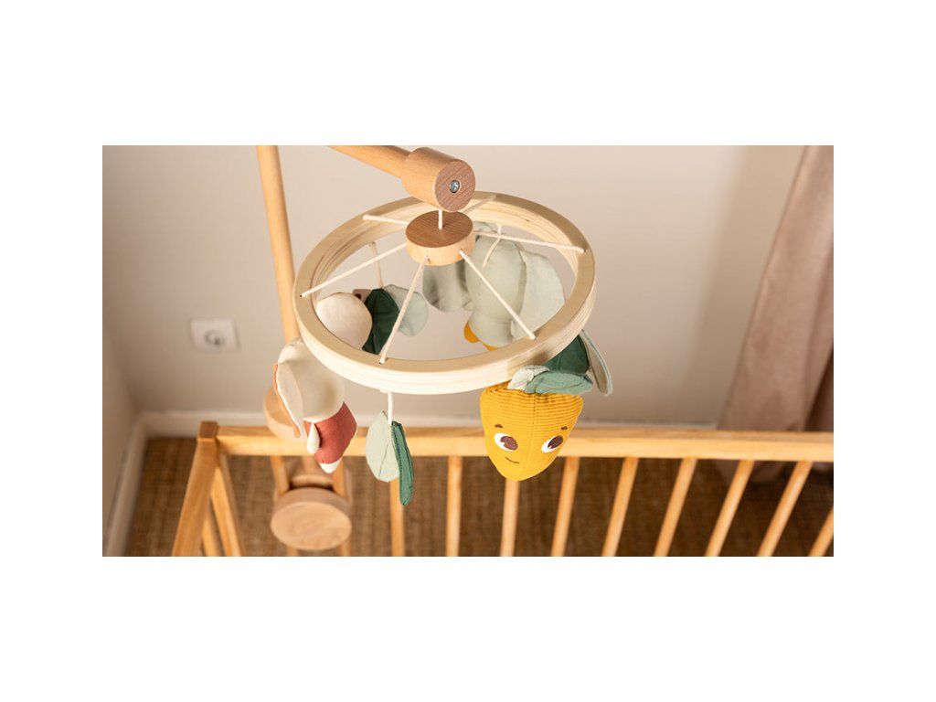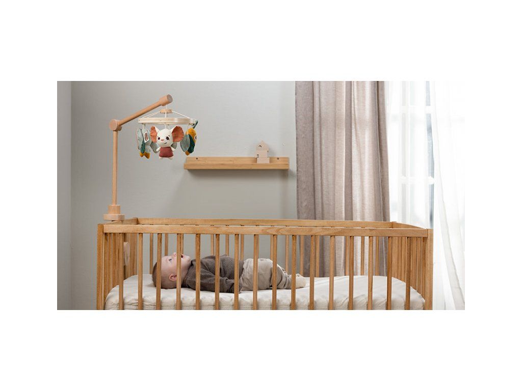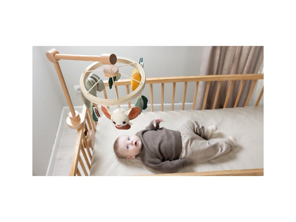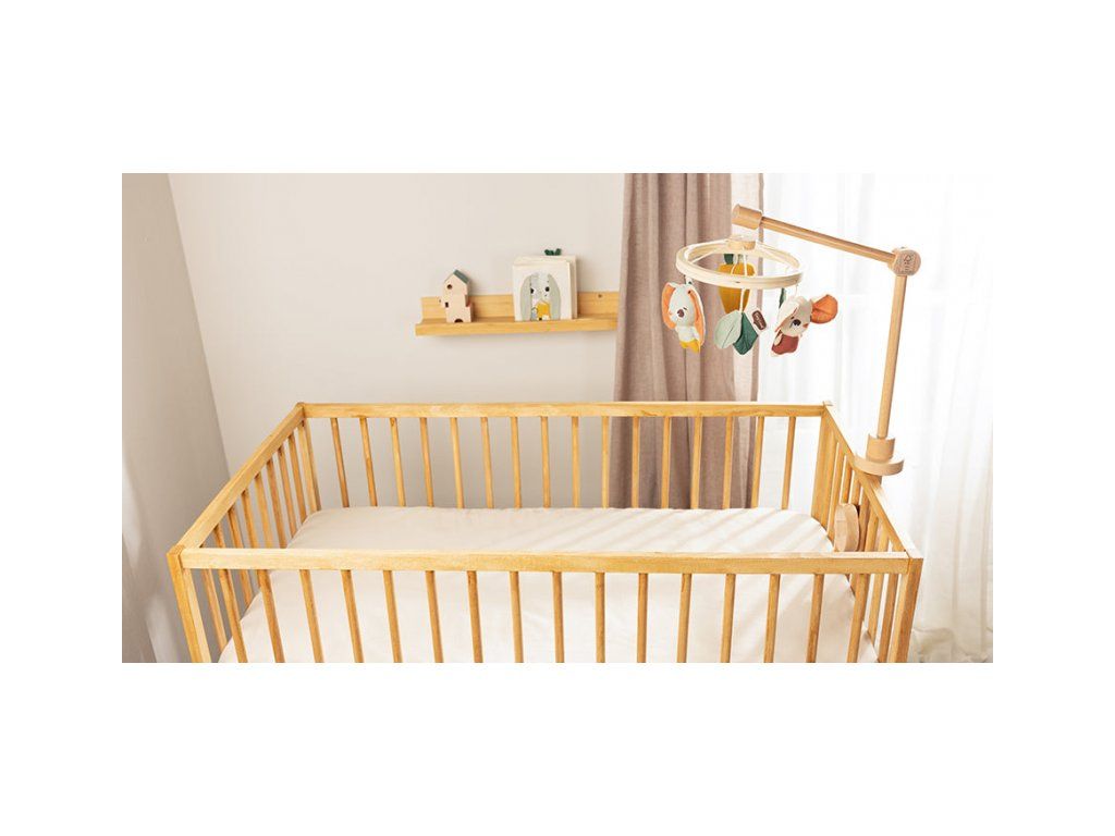 Díky dřevěnému zámku kolotoč snadno a bezpečně připevníte k většině postýlek.