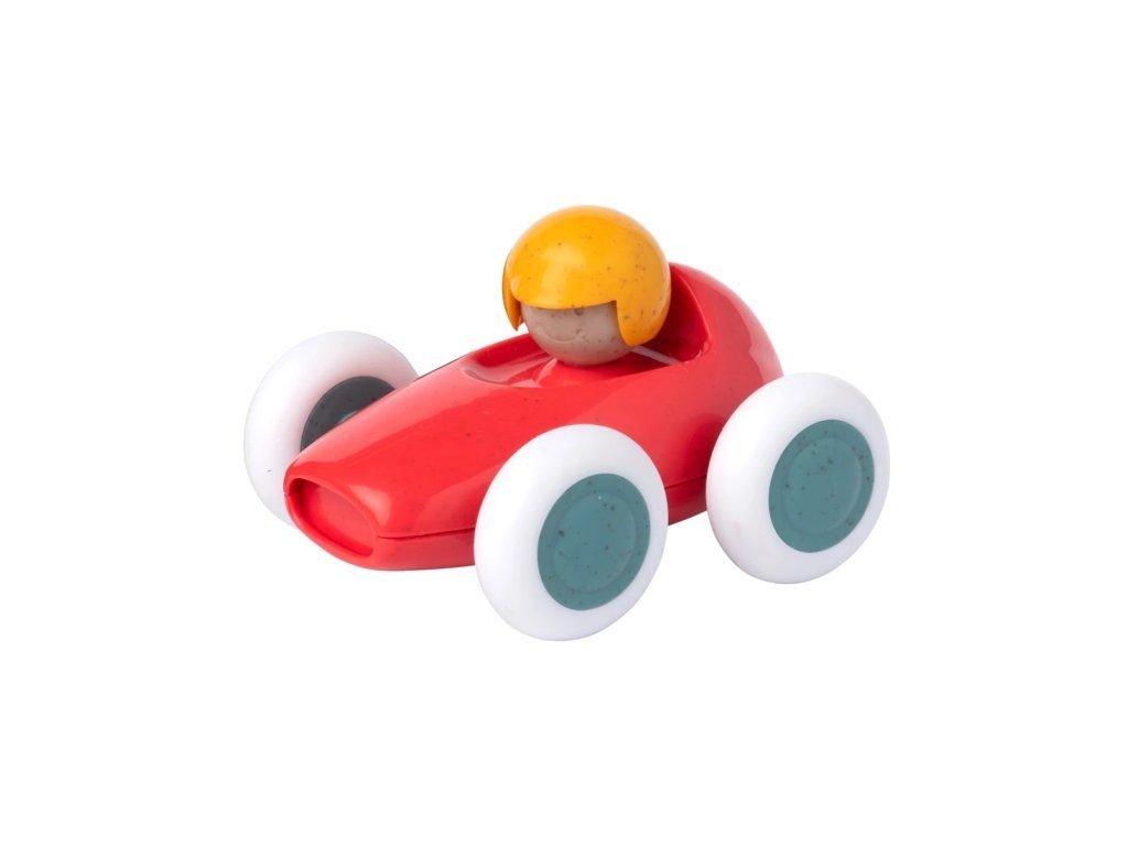 Tolo Závodní autíčko je barevná a veselá hračka, která se jednoduše ovládá. Kola i hlava závodníka se dají otáčet, což trénuje zručnost děťátka a rozvíjí motoriku. Hračka je vyrobena z materiálu bezpečného k vkládání do úst při prořezávání zoubků.
