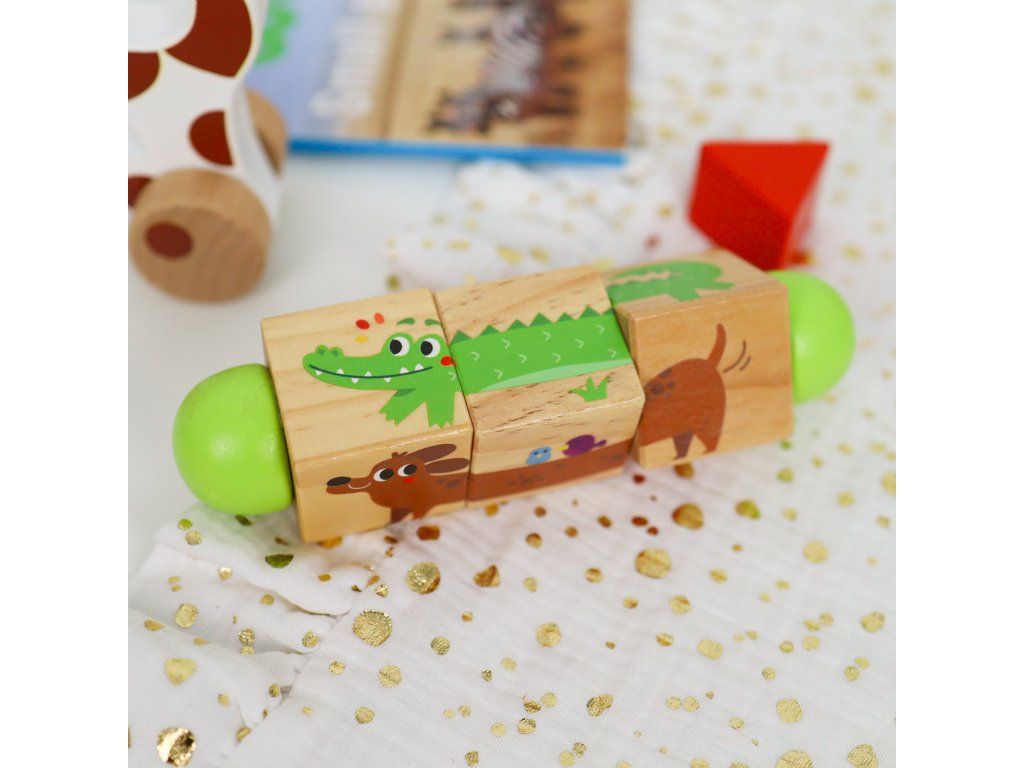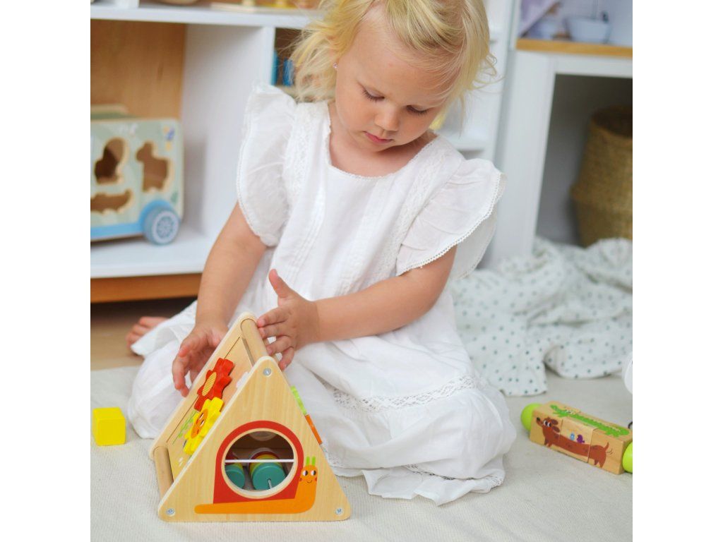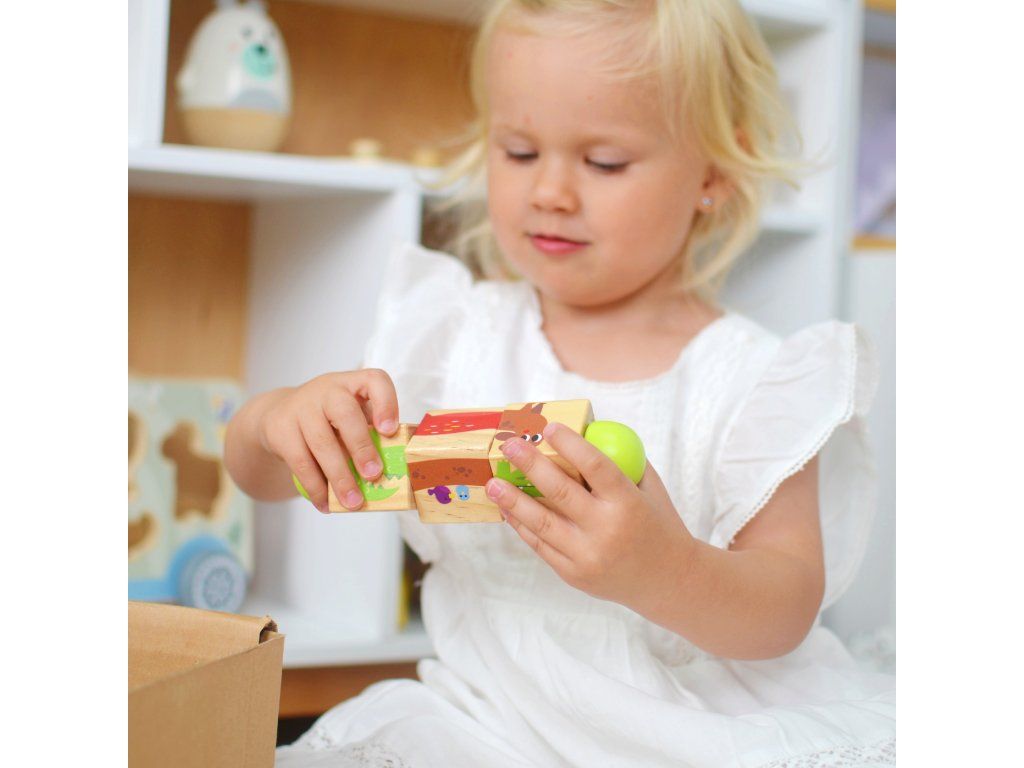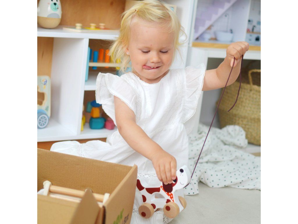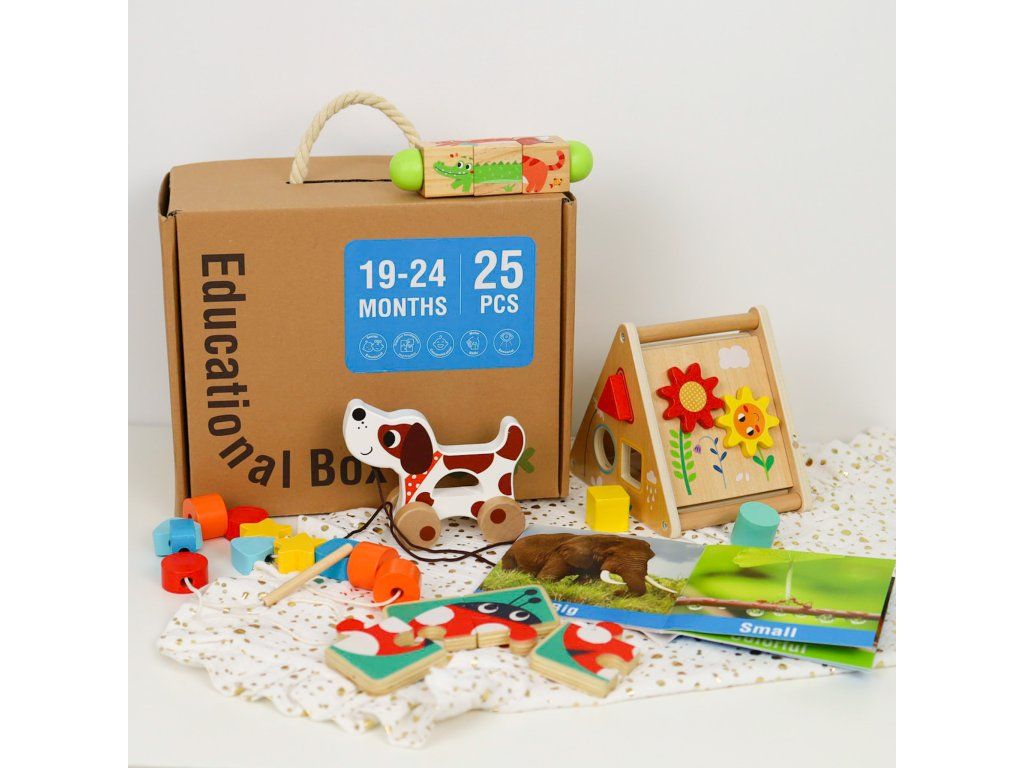 19–24 měsíců Vzdělávací box Maxi 6 ks 6 didaktických hraček do 2 let v jednom balení Vzdělávací box Maxi od Tooky Toy je určen pro batolata přibližně od 17 měsíců do 2 let. Obsahuje 6 montessori didaktických hraček do 2 let, které podporují zdravý psychomotorický rozvoj vašeho dítěte, rozvíjí jeho logické myšlení, smyslové vnímání, koordinaci ruka-oko, jemnou motoriku a další. Nechybí ani podrobná příručka pro rodiče, díky které budete vědět, kdy jakou hračku dítěti představit a jak si s ní hrát.Box obsahuje:dřevěné skládací puzzle ze 4 dílků,tahacího pejska na kolečkách,navlékací korálky s provázkem a dřevěnou jehlou a sáček,motorický trojúhelník aktivit,skládání obrázků z točících se kostek,obrázkovou knížku Malé a velké, návod k použití v angličtině.Bezpečné vzdělávací hračky pro nejmenší Díky Vzdělávacímu boxu nebudete kupovat zbytečně mnoho nevhodných či plastových hraček. Didaktické hračky Tooky Toy jsou vyráběny s ohledem na životní prostředí ze dřeva z udržitelného lesnictví a dalších bezpečných materiálů. Barvy jsou netoxické a zcela bezpečné. Až děťátko vyroste, postoupí k dalšímu Vzdělávacímu boxu 25–36 měsíců a tento můžete nechat pro mladší sourozence nebo věnovat někomu jinému. Vzdělávací box Tooky Toy je vhodný jako dárek pro batole.