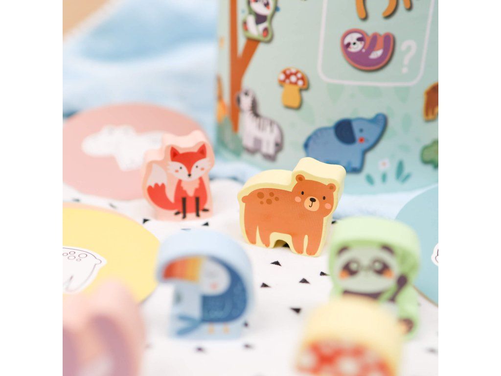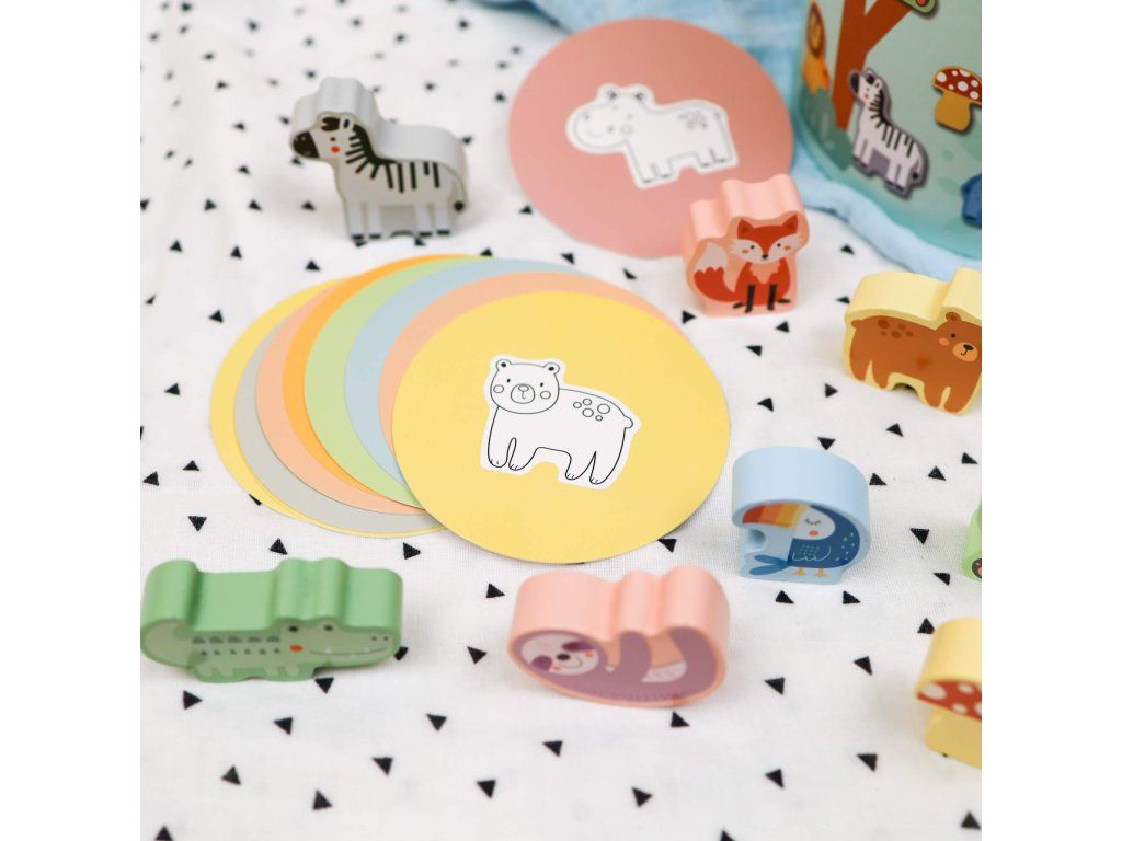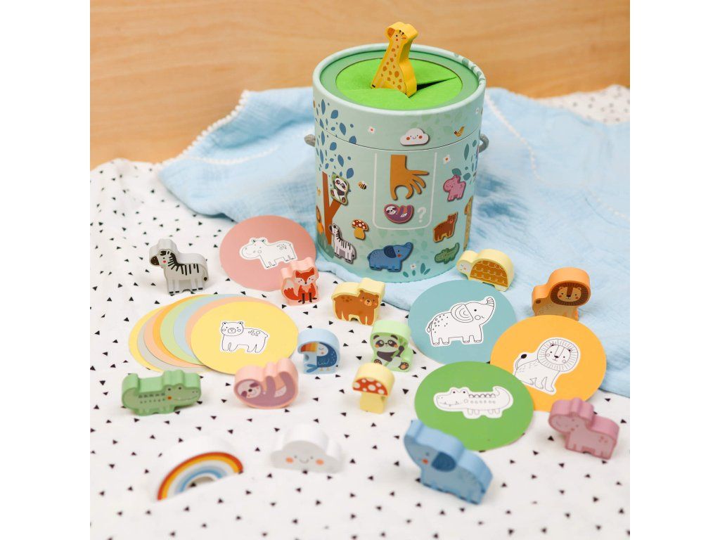 Hmatej a najdi Zvířátka Pastel Poznej zvířátko podle hmatu! Dřevěná hra hmatej a najdi Zvířátka v pastelových barvách od Tooky Toy je skvělou multifunkční hračkou, kterou děti využijí samostatně, ale i jako společenskou hru. Hra obsahuje 15 dřevěných figurek zvířátek a dalších přírodních motivů ukrytých v kyblíčcích, do kterých nikdo nevidí. Děti si vyberou jednu z 15 kartiček a podle obrázku mají po hmatu danou figurku najít. Hru lze hrát několika způsoby.Hmat a objevuj zabaví i vzdělává Dřevěná hra Hmat a objevuj je velmi oblíbená, protože je originální a rozvíjí u dětí hmat, na který se často zapomíná. Děti si tak procvičí jemnou motoriku, pozornost, rozšíří si přitom slovní zásobu i své vyjadřovací schopnosti. S figurkami si děti vyhrají i samostatně a mohou je stavět na sebe jako balanční hru. Dřevěné hračky Tooky Toy jsou vyrobeny s ohledem na bezpečnost dětí a životní prostředí.