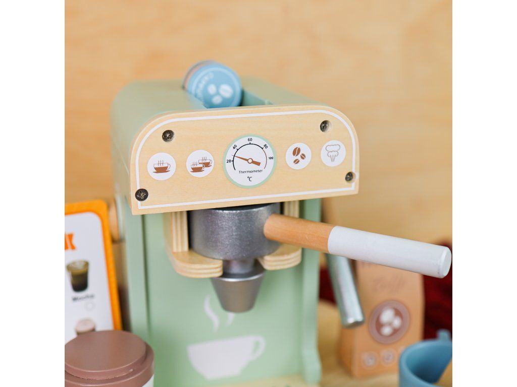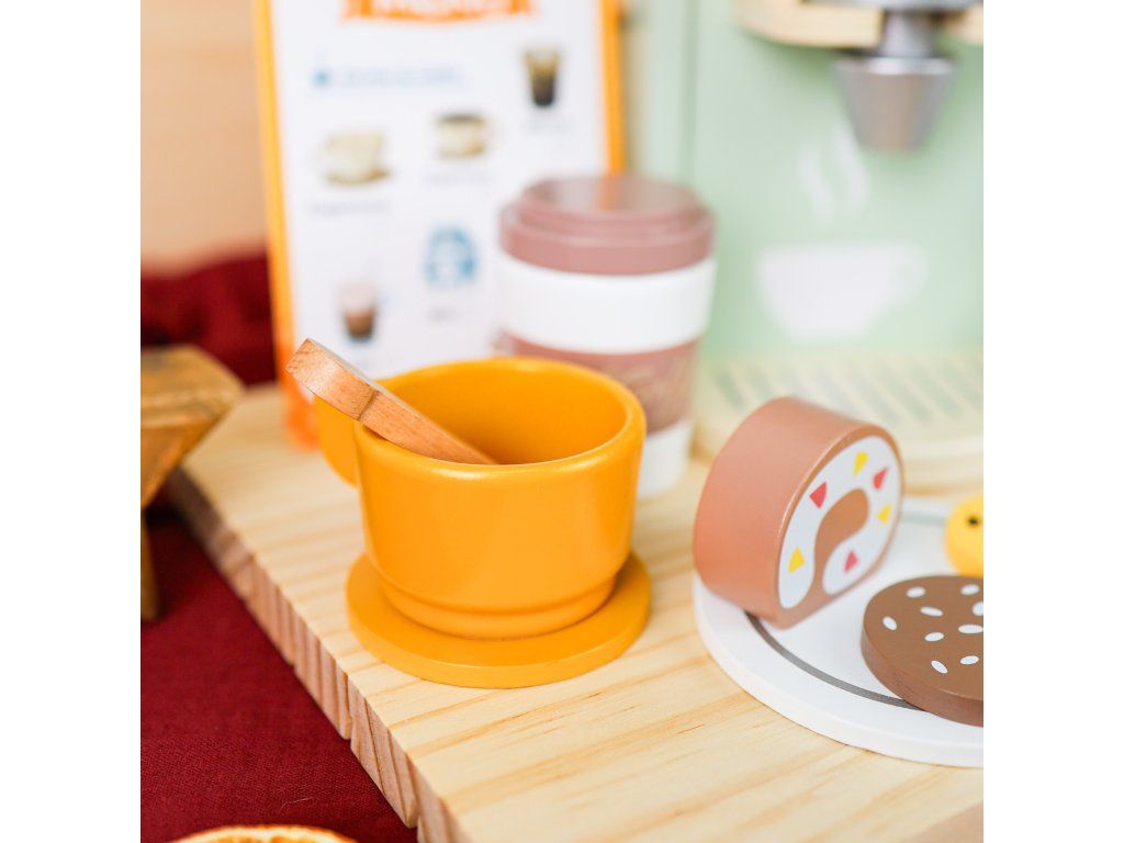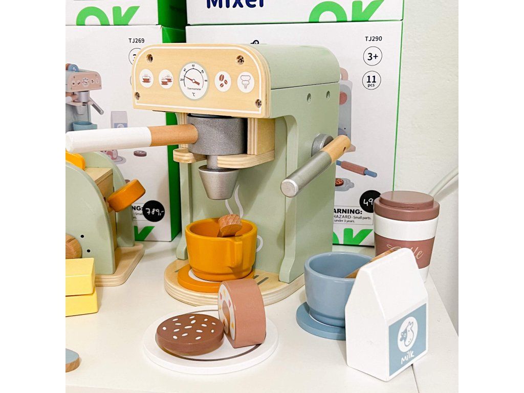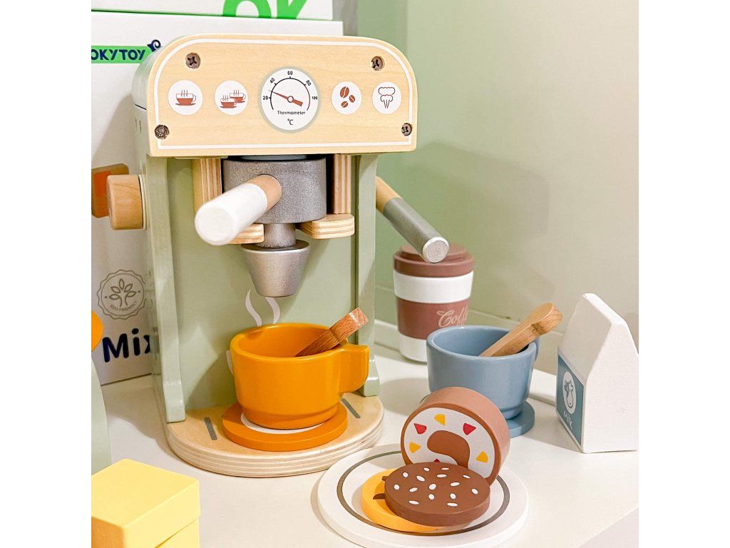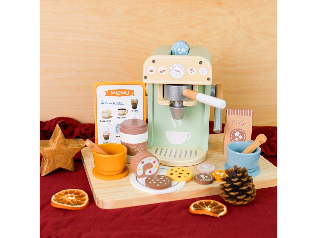 Kávovar s příslušenstvím Pastel Dokonalá hračka na přípravu kávy Nepřehlédnutelný dřevěný kávovar pro děti v pastelových barvách od Tooky Toy je skvělou hračkou na hraní rolí na dospělé i profese. Dřevěný kávovar se stane jedinečným doplňkem dětské kuchyňky a lze jej využít při hře na přípravu snídaně či kavárnu. Kromě kávovaru má dalších 18 dílků dřevěného příslušenství, jako jsou šálky na kávu, káva, mléko, zákusky i snídaňové menu. Kávovar má několik mechanických prvků, aby hra děti ještě více bavila.Děti si rozvíjejí sociální dovednosti Dětský kávovar ze dřeva v pastelových barvách s příslušenstvím pomáhá dětem díky hře na dospělé zlepšovat se v sociálních dovednostech a komunikaci. Děti jsou při hře kreativní a získávají kladný vztah k přípravě a servírování jídla. Dřevěné hračky pro děti Tooky Toy jsou vyrobeny z pevného, dobře opracovaného dřeva z udržitelných zdrojů a jsou natřeny netoxickými barvami a lakem. Sada je skvělým dárkem k narozeninám pro děti.