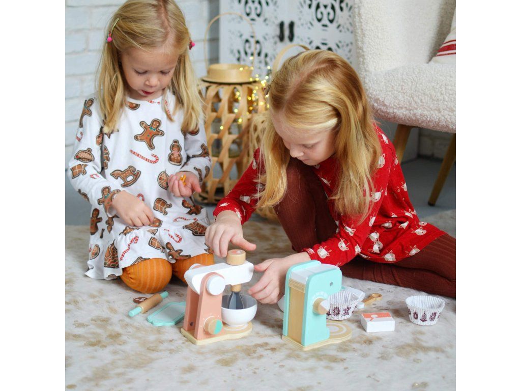 Kávovar s příslušenstvím Nechte si uvařit skvělou kávičku! Krásná dřevěná sada je skvělým doplňkem do každé dětské kuchyňky. Součástí kávovaru je bílý šálek, kávová zrnka, mléko a lžička na zamíchání. Děti si rozvíjejí sociální dovednosti. Kávovar je jako stvořený pro rolové hry. Sadu si můžete rozšířit i o další doplňky jako Topinkovač s příslušenstvím z této řady. Spotřebiče podporují rozvoj motorických schopností a sociálních dovedností.