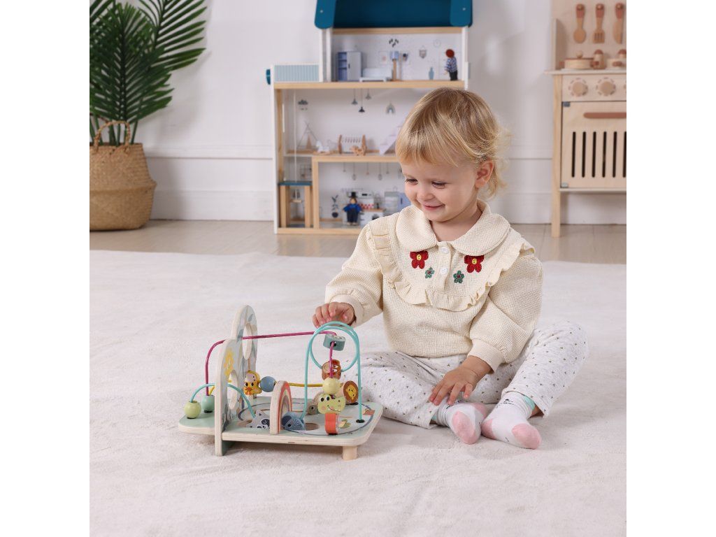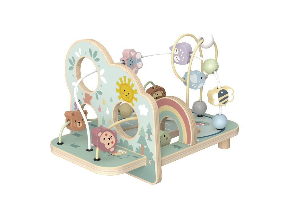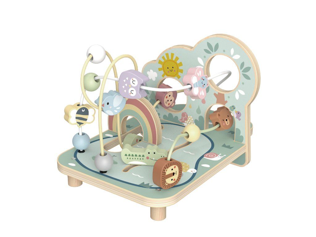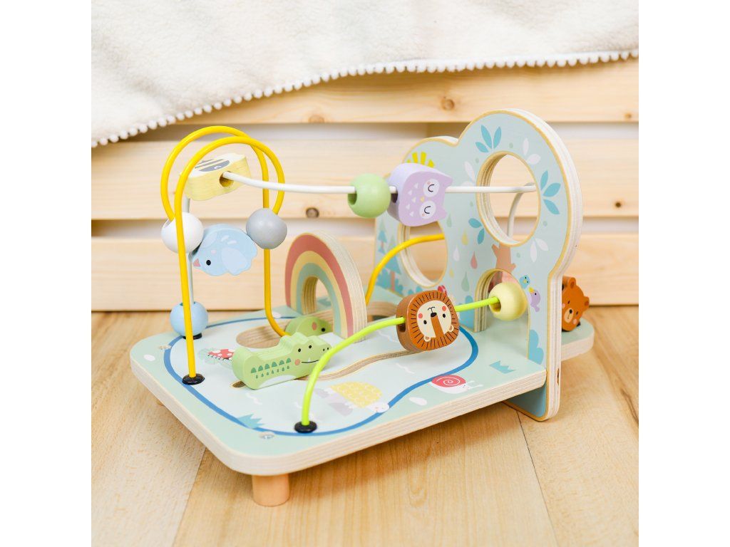 Motorický labyrint Les Pastel Originální bludiště pro nejmenší! Dřevěný motorický labyrint s motivy lesa a savany od Tooky Toy v nadčasových pastelových barvách nabízí spoustu zábavy již pro děti od 2 let. Děti posouvají roztomilá lesní a luční zvířátka v podobě dřevěných korálků přes stromy i po vodě. Větší děti využijí tuto dřevěnou hračku i jako kulisu pro své hry. Bludiště je kompaktní a má 4 malé nožičky, takže ho snadno postavíte na jakýkoli rovný povrch.Skvělé pro rozvoj jemné motoriky Nádherný motorický labyrint také rozvíjí koordinaci ruka-oko, vnímání barev, schopnost soustředění, fantazii či představivost. Dřevěné hračky pro děti od Tooky Toy jsou vyrobeny z kvalitních materiálů a pro děti zcela bezpečné. Dřevěné prvky jsou z pevného, dobře opracovaného dřeva natřeného netoxickými barvami a lakem.