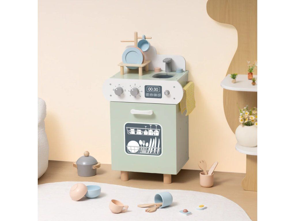 Myčka nádobíMyčka nádobí pro děti – realistická hra na domácnostDopřejte dětem možnost hrát si na dospělé s realistickou myčkou nádobí pro děti! Tato kreativní hračka do dětské kuchyňky pomáhá rozvíjet fantazii, logické myšlení, jemnou motoriku a smysl pro zodpovědnost – a to vše hravou formou.Čím si děti získá?realistický design se 2 otočnými knoflíkyfunkční vzhled jako skutečná myčka nádobí pro děterozvíjí komunikační a sociální dovednosti při společné hře“podporuje učební proces pozorováním a napodobováním dospělýchideální doplnění k dětské kuchyňceCo najdete v balení?2× miska2× šálek na kávu2× sklenice2× talíř2× nůž a vidlička1× hrnec1× utěrka další doplňky pro realistickou hruProč si ji zamilujete?děti mohou „mýt“, „sušit“ a „ukládat“ nádobí jako skuteční pomocníci v domácnostinaučí se zodpovědnosti, pořádku a péči o své věci – zábavným a bezpečným způsobemje skvělým dárkem pro všechny malé kuchaře a kuchařky, kteří rádi napodobují dospělé a objevují svět domácích prací
