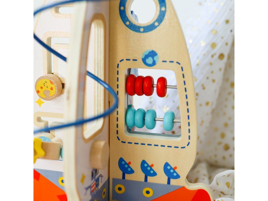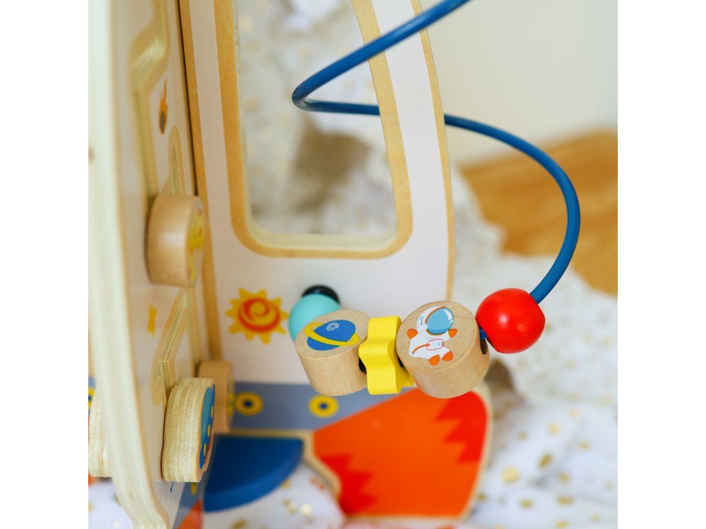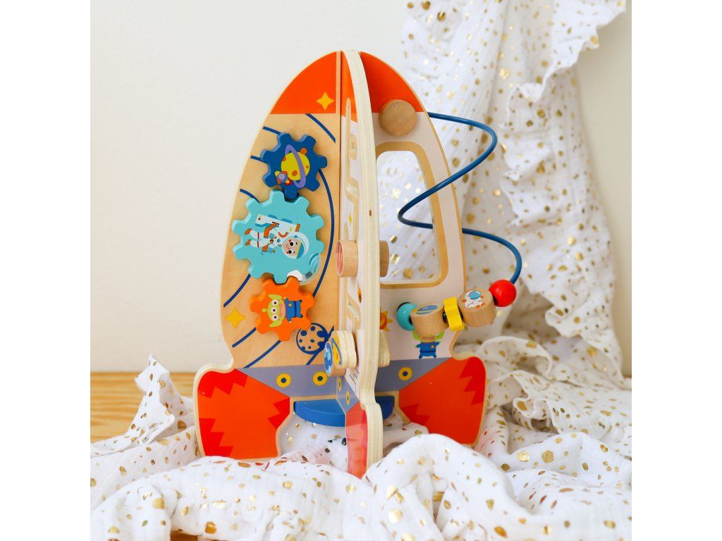 Raketa s motorickými aktivitami 4 motorické aktivity pro milovníky Vesmíru Dřevěná raketa s motorickými aktivitami od Tooky Toy zabaví děti do 2 let. Nabízí několik aktivit, jako je korálkové bludiště, ozubená kolečka, počítadlo či posouvání tvarů. Všechny tyto hry jsou s motivy vesmíru, aby děti ještě víc bavily.Skvělá vzdělávací hračka Hra s motorickými hračkami rozvíjí jemné motorické dovednosti, koordinaci ruka-oko, prostorové vnímání, učí barvy i základní počty. je to úžasný dárek pro děti! Dřevěné hračky Tooky Toy jsou vyrobeny prvotřídního dřeva z udržitelných zdrojů a mají netoxické barvy a lak.