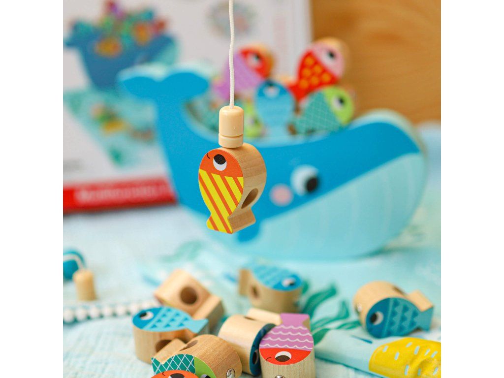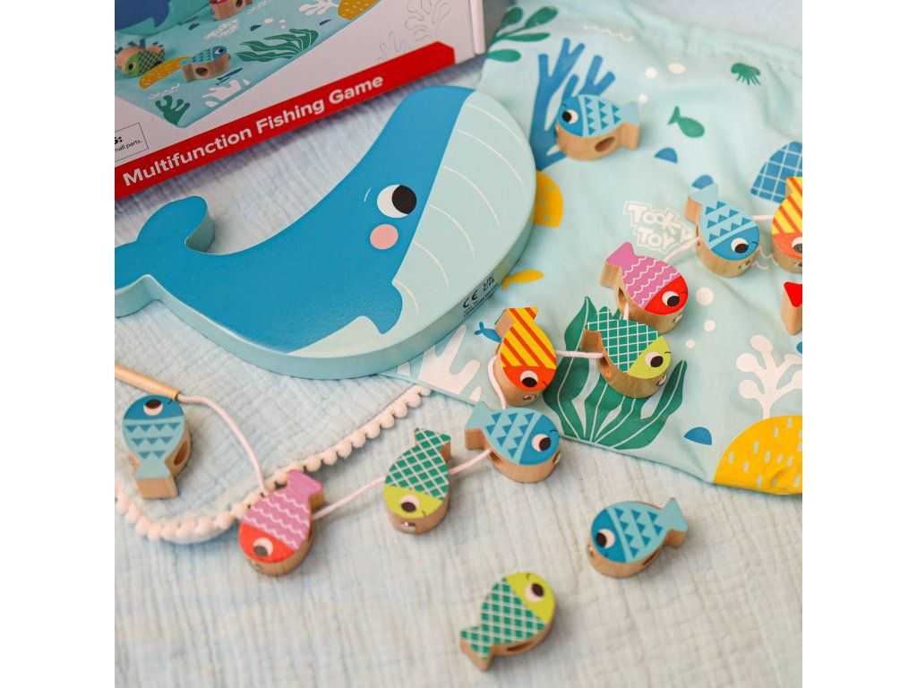 Rybičky Multifunkční hra Spousta zábavy v jednom sáčku Pokud doma máte málo místa, jste fanoušci minimalismu, nebo potřebujete skladnou zábavu pro vaše děti na cesty, multifunkční hra Rybičky z dílny Tooy Toy je přesně pro vás. V jednom sáčku totiž děti najdou vše na klasickou společenskou hru chytání rybiček, balanční hru, nasazování a třídění i navlékání. Celé balení dohromady obsahuje 25 krásně zpracovaných dílků z kvalitního dřeva a bezpečných barev.Děti si procvičí motorické dovednosti. Díky hraní s rybičkami si děti zlepšují jemnou motoriku, koordinaci oko-ruka i trpělivost. S malými rybičkami se učí barvy a základní počty. S jednotlivými dílky této hry si ale vyhrají jen tak. Celé balení dohromady obsahuje 25 krásně zpracovaných dílků z kvalitního dřeva a bezpečných barev.