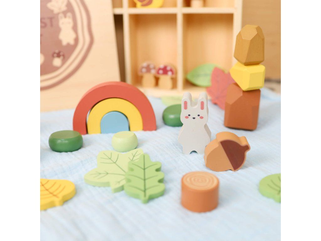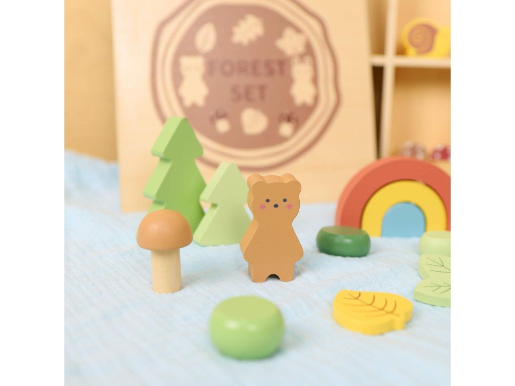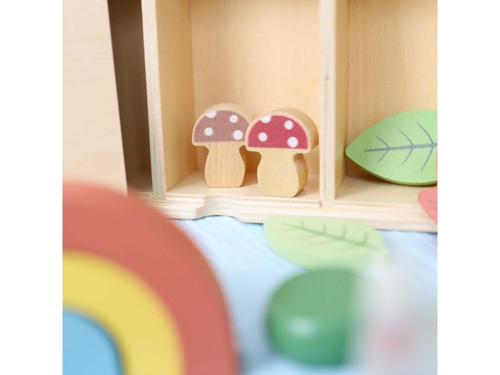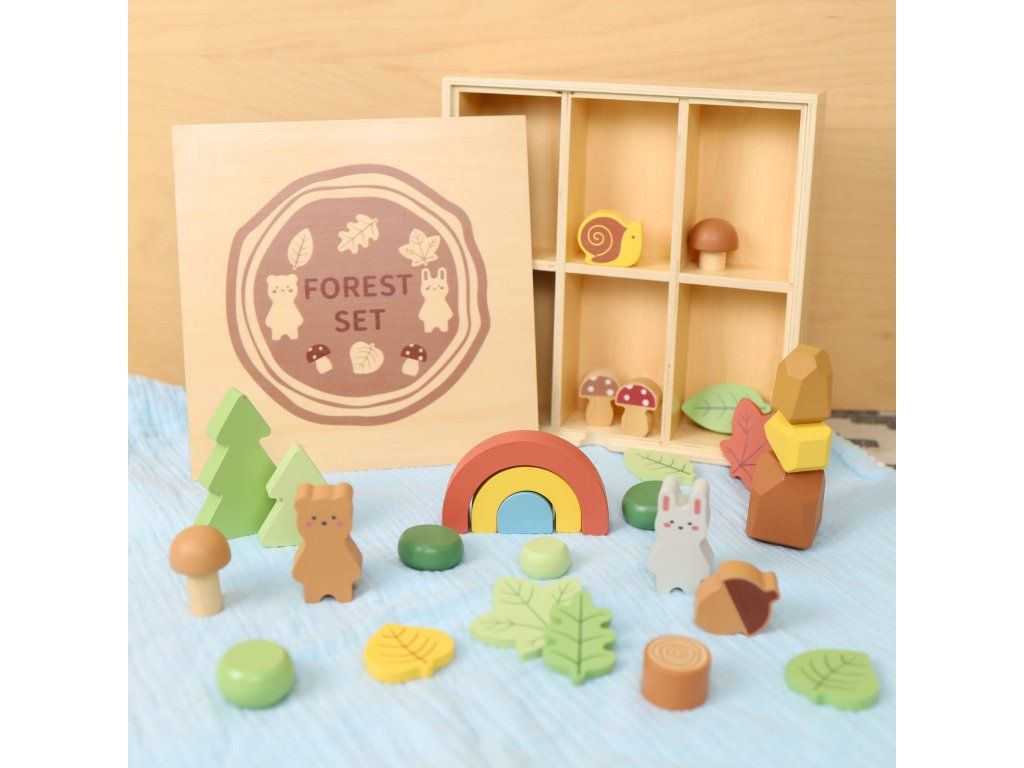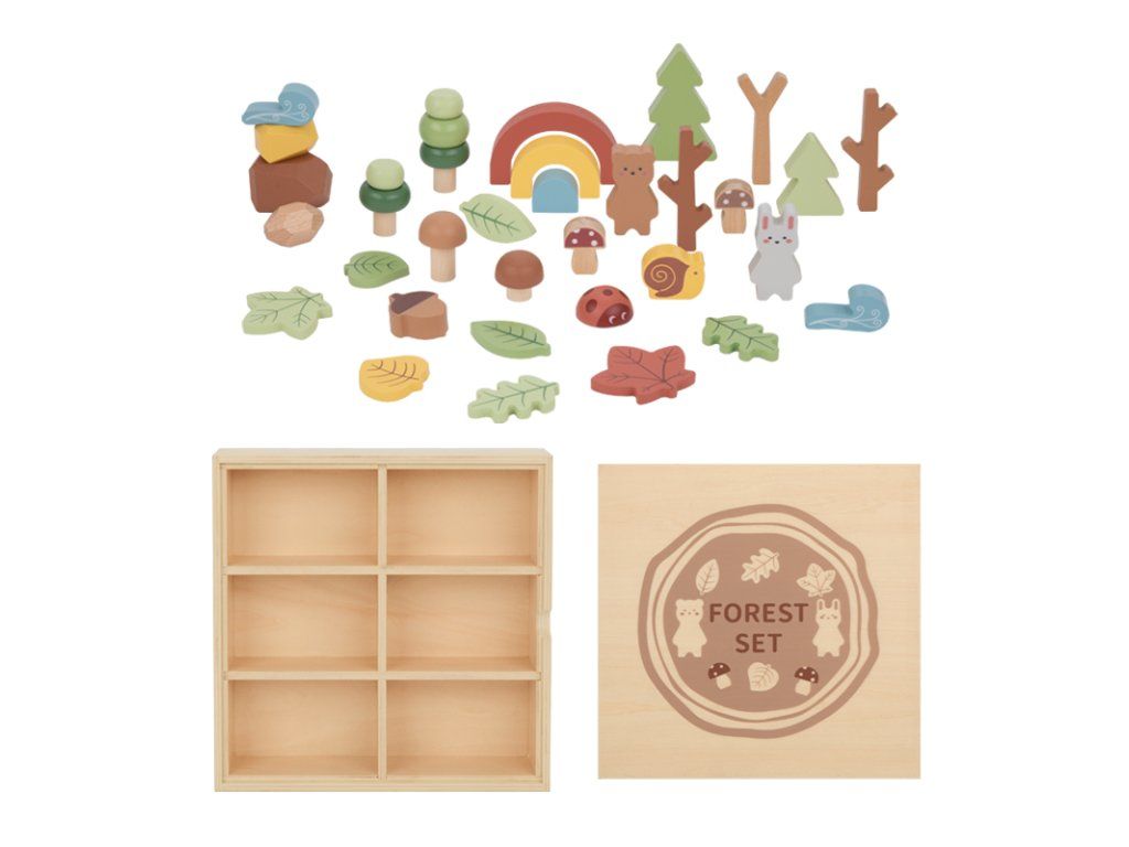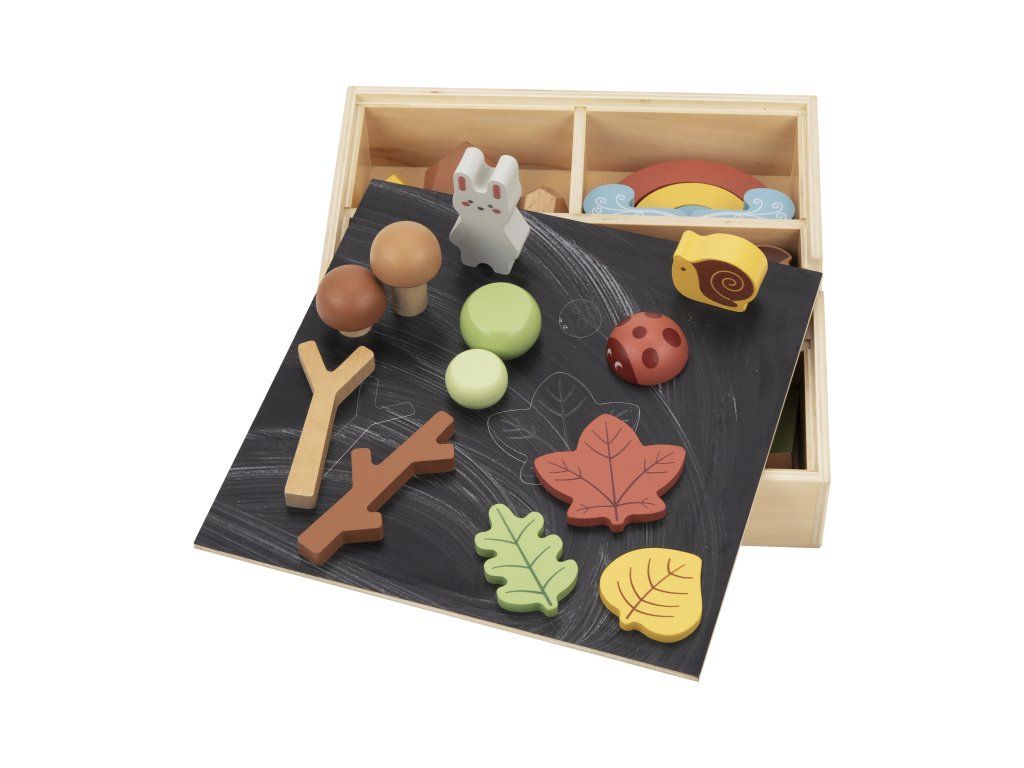 Hrací sada v boxu Les Dřevěná hrací sada pro milovníky přírody Dřevěná sada na hraní Les od Tooky Toy děti zabaví na celé hodiny. Luxusní dřevěná krabička se šesti přihrádkami obsahuje téměř 40 různých figurek lesních zvířátek, rostlin, stromů, kamenů a dalších doplňků, se kterými si děti vytvoří svůj vlastní les plný zvířátek. Souprava může také sloužit jako kulisa pro jiné stavebnice, nebo ji děti mohou doplnit dalšími hračkami a figurkami. Víko od dřevěné vitrínky slouží i jako černá tabule na křídy!Hrací sada podporuje rozvoj dětí Děti si během hraní s dřevěným lesem rozvíjejí jemnou motoriku, kreativitu, vymýšlejí vlastní příběhy, navrhují vlastní scény. Při hraní s více dětmi si také rozvíjejí své komunikační a sociální schopnosti. Celá sada je vyrobena ze dřeva z udržitelného lesnictví. Barvy jsou netoxické a zdravotně nezávadné. Značka Tooky Toy si zakládá na bezpečnosti, ekologické výrobě a didaktickém rozměru svých hraček.