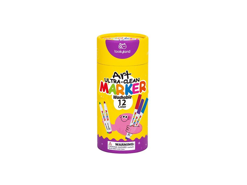 Omyvatelné fixy pro nejmenší se zaoblenou špičkou 12 ks Ideální pro první kreslení s fixami Silné omyvatelné fixy pro nejmenší od Tookyland mají 12 nádherných sytých barev a dětem se s nimi bude krásně kreslit. Velký hrot má oblý tvar, díky kterému jsou vhodné pro úplné začátečníky. Barva se nerozmazává a neprosakuje přes papír. Kreslení tak děti hned více baví a motivuje je k další kreativní činnosti.Barvy jsou netoxické a smývatelné Velikost smývatelných fixů pro nejmenší je přizpůsobena k držení v malých dětských rukou. Kromě toho nemusíte mít ani obavu, že udělají nepořádek. Barvy lze omýt z ručiček, vyprat z trička nebo setřít ze stolu. Fixy pro děti jsou uloženy v praktickém válcovitém boxu, který si děti vezmou snadno všude s sebou a po kreslení do něj všechny fixy opět uklidí.