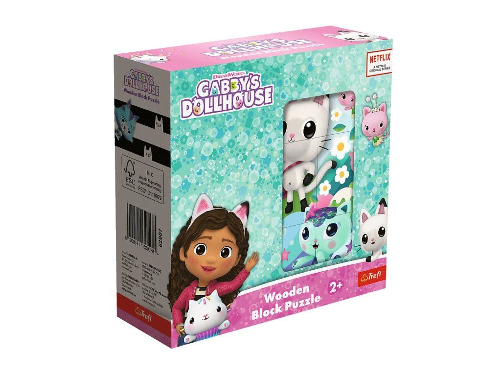 Ponořte se do kouzelného světa Gabi a jejích kočičích kamarádů z populárního seriálu Gabiin kočičí domeček! Tato klasická dřevěná hračka s moderním nádechem je ideální pro všechny malé fanoušky pohádky, kteří rádi skládají, porovnávají a objevují barevné ilustrace svých oblíbených postaviček.