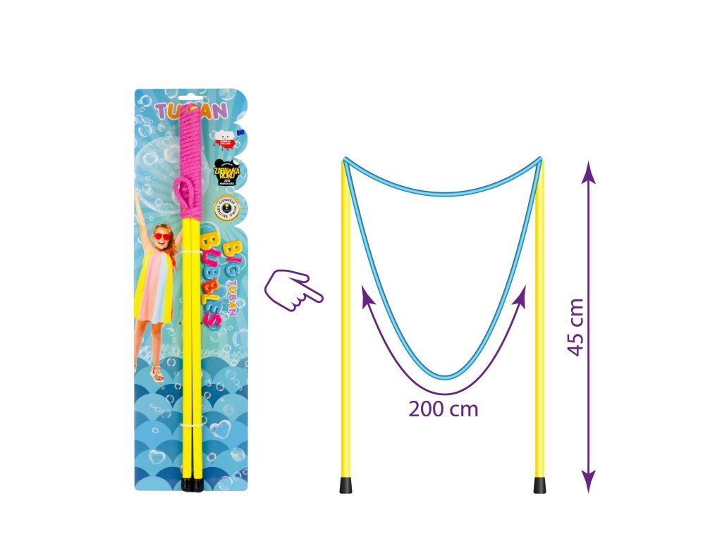 Zažijte neopakovatelnou bublinkovou podívanou s hůlkami se šňůrkou, které vám umožní vytvářet gigantické mýdlové bubliny a dlouhé bublinkové tunely. Stačí namočit šňůrku do tekutiny, jemně roztáhnout hůlky a sledovat, jak se ve vzduchu objevují lesklé, pestrobarevné bubliny, které se vznášejí kolem vás. Nezáleží na tom, zda jste na zahradě, na terase nebo u moře – s těmito hůlkami zábava nikdy nekončí. Hůlky mají délku přibližně 45 cm a šňůrka měří 200 cm, což zajišťuje jednoduchou manipulaci i pro děti.