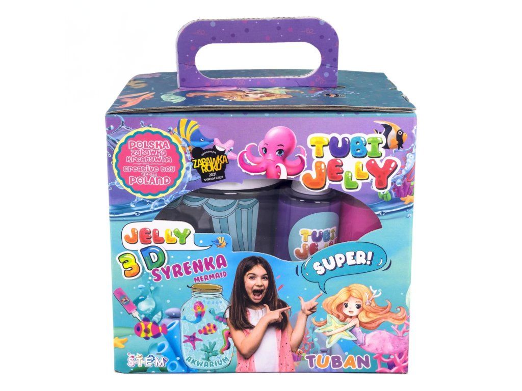 Tubi Jelly Kreativní set s akváriem XL Mořská panna Vytvořte si 3D gelové figurky Tubi Jelly set je jedinečná tvořivá sada na tvorbu trojrozměrných figurek. Sada XL obsahuje až 6 barevných gelů. Součástí jsou také šablony na kreslení s motivy mořských panen. Po vyplnění šablony gely ji ponoříte do rozpuštěného aktivátoru a vaše postavička se promění na svou trojrozměrnou verzi. Díky přiložené prázdné fólii si děti mohou nakreslit a vytvořit cokoliv je napadne. Vytvořené figurky a tvary můžete umístit do přiloženého akvária, které naplníte vodními krystaly a vytvoříte si tak svůj vlastní malý svět fantazie.Sada obsahuje: tekutý gel 150 ml v 6 barvách, tematické šablony, 6 x 5 g aktivátoru, vodní krystaly, nádobu na přípravu figurek, akvárium.Oceněná hračka roku 2021 V roce 2021 byl produkt Tubi Jelly oceněn titulem Hračka roku v kategorii kreativní hračky. Vyzkoušejte ho i vy.Všechny produkty značky Tuban jsou vyrobeny z kvalitních materiálů, jsou bezpečné a netoxické, což znamená, že se nemusíte obávat o zdraví svých dětí a můžete mít jistotu, že je čekají jen ty nejlepší zážitky.