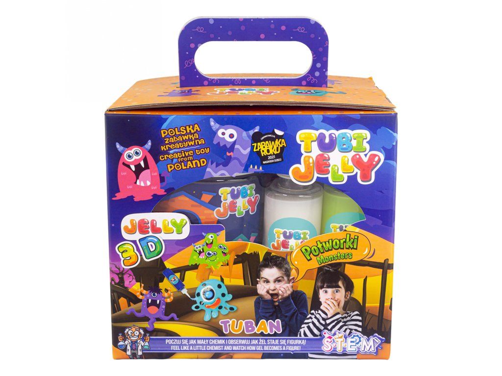 Tubi Jelly Kreativní set s akváriem XL Příšerky Vytvořte si 3D gelové figurky Tubi Jelly sada je jedinečná tvůrčí sada na tvorbu trojrozměrných figurek. Sada XL obsahuje až 6 barevných gelů. Součástí jsou také šablony na kreslení s motivy příšerek. Po vyplnění šablony gely ji ponoříte do rozpuštěného aktivátoru a vaše postavička se promění na svou trojrozměrnou verzi. Díky přiložené prázdné fólii si děti mohou nakreslit a vytvořit cokoliv je napadne. Vytvořené figurky a tvary můžete umístit do přiloženého akvária, které naplníte vodními krystaly a vytvoříte si tak svůj vlastní malý svět fantazie.Sada obsahuje: tekutý gel 150 ml v 6 barvách, tematické šablony, 6 x 5 g aktivátoru, vodní krystaly, nádobu na přípravu figurek, akvárium.Oceněná hračka roku 2021 V roce 2021 byl produkt Tubi Jelly oceněn titulem Hračka roku v kategorii kreativní hračky. Vyzkoušejte ho i vy.Všechny produkty značky Tuban jsou vyrobeny z kvalitních materiálů, jsou bezpečné a netoxické, což znamená, že se nemusíte obávat o zdraví svých dětí a můžete mít jistotu, že je čekají jen ty nejlepší zážitky.