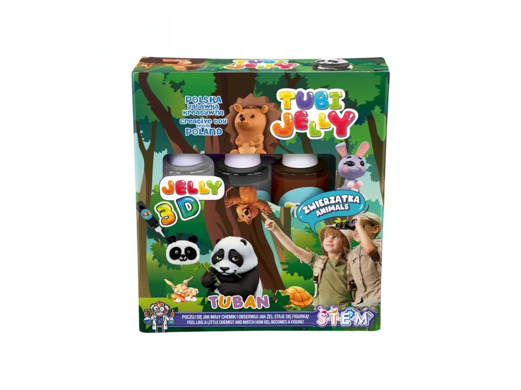Tubi Jelly Kreativní set Zvířátka Vytvořte si 3D gelové figurky Tubi Jelly set je jedinečná tvůrčí sada na tvorbu trojrozměrných figurek. Sada obsahuje 3 barevné gely a šablony na kreslení s motivy zvířat. Po vyplnění šablony gely ji ponoříte do rozpuštěného aktivátoru a vaše postavička se promění na svou trojrozměrnou verzi. Díky přiložené prázdné fólii si děti mohou nakreslit a vytvořit cokoliv je napadne.Sada obsahuje: tekutý gel 150 ml ve 3 barvách, tematické šablony, 3 x 5 g aktivátoru, nádobu na přípravu figurek.Oceněná hračka roku 2021 V roce 2021 byl produkt Tubi Jelly oceněn titulem Hračka roku v kategorii kreativní hračky. Vyzkoušejte ho i vy.Všechny produkty značky Tuban jsou vyrobeny z kvalitních materiálů, jsou bezpečné a netoxické, což znamená, že se nemusíte obávat o zdraví svých dětí a můžete mít jistotu, že je čekají jen ty nejlepší zážitky.
