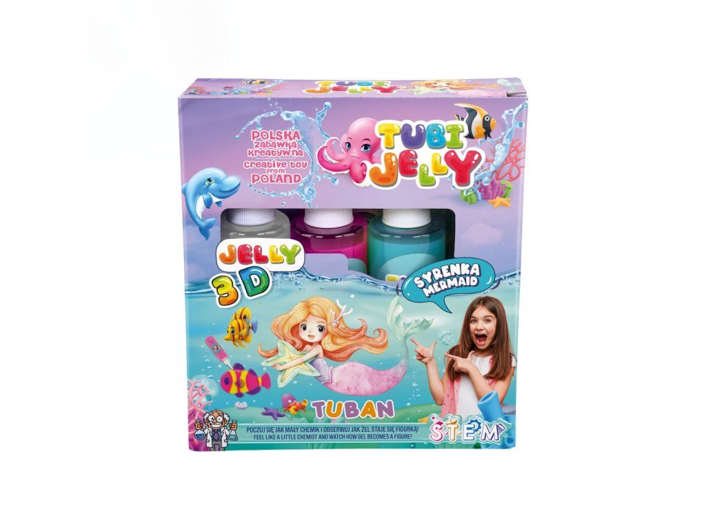 Tubi Jelly Kreativní sada Mořská panna Vytvořte si 3D gelové figurky Tubi Jelly sada je jedinečná tvořivá sada na tvorbu trojrozměrných figurek. Sada obsahuje 3 barevné gely a šablony na kreslení s motivy mořských panen. Po vyplnění šablony gely ji ponoříte do rozpuštěného aktivátoru a vaše postavička se promění na svou trojrozměrnou verzi. Díky přiložené prázdné fólii si děti mohou nakreslit a vytvořit cokoliv je napadne.Sada obsahuje:tekutý gel 150 ml ve 3 barvách (bílá, růžová, modrá),tématické šablony,3 x 5 g aktivátoru,nádobu na přípravu figurek.Oceněná hračka roku 2021 V roce 2021 byl produkt Tubi Jelly oceněn titulem Hračka roku v kategorii kreativní hračky. Vyzkoušejte ho i vy.Všechny produkty značky Tuban jsou vyrobeny z kvalitních materiálů, jsou bezpečné a netoxické, což znamená, že se nemusíte obávat o zdraví svých dětí a můžete mít jistotu, že je čekají jen ty nejlepší zážitky.