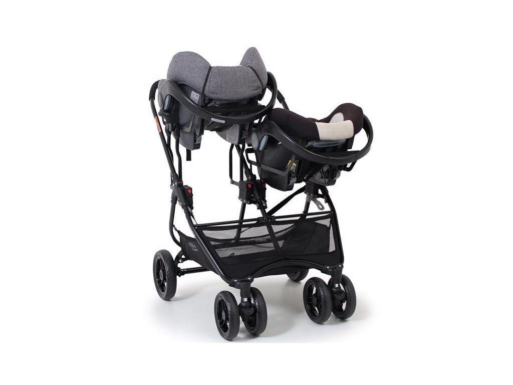 Adaptér A je hlavní adaptér, který se umisťuje výše na konstrukci. Tato konstrukce umožňuje současné používání dvou autosedaček.