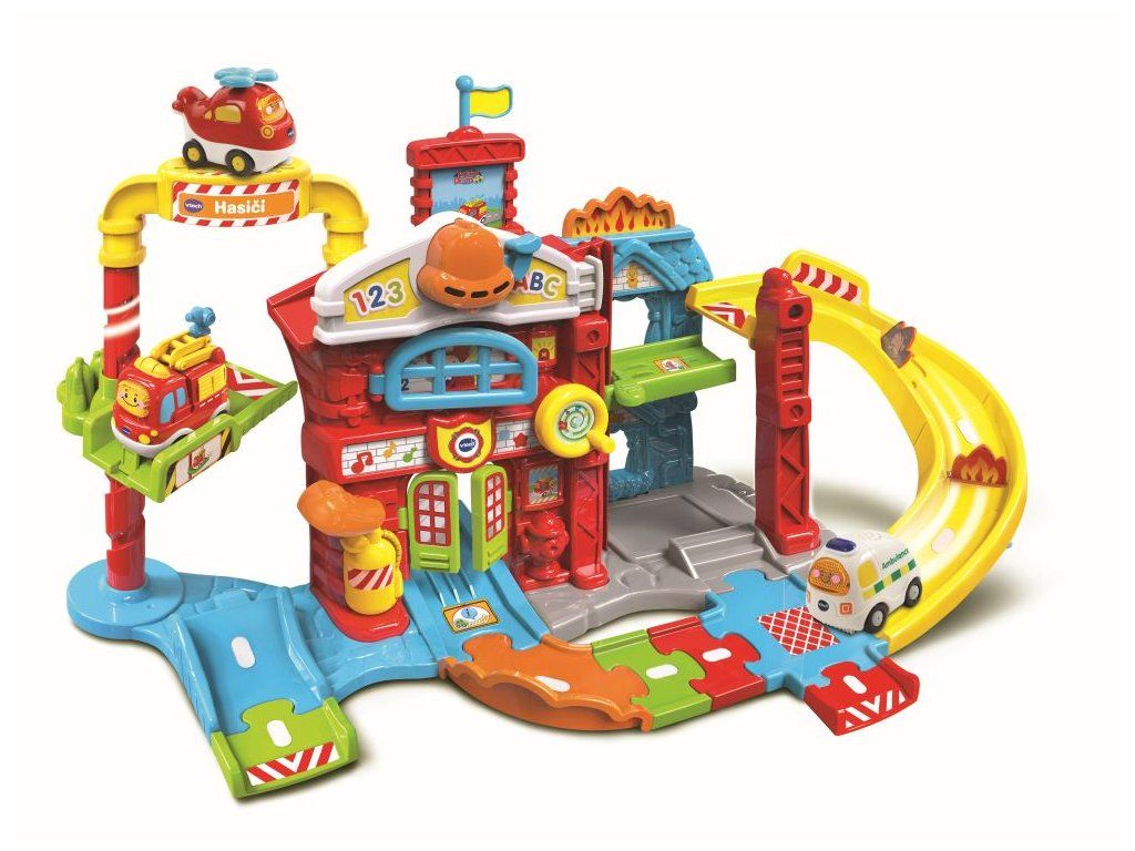 Tut Tut Autíčka - Hasičská stanice. Interaktivní hračka s jedním Tut Tut mluvícím hasičským autíčkem. Hasičská stanice umožňuje: sestavit desítky různých variant budovy a cest, vyprávění a různé reakce Tut Tut autíček na různých místech dráhy pomocí SmartPoint bodů. Otáčení po točně nahoru a dolů (podporuje rozvíjení jemné motoriky), přejezd výtahovou plošinou přímo na střechu stanice, používání hasičského alarmu, pumpování, navíjení hadice, otevírání a zavírání vrat i oken, sklápět protipožární stěnu, autíčko zná desítky roztomilých frází. Zazpívá 3 písničky a zahraje 6 melodií. Hasičskou stanici lze přímo propojit s ostatními dráhami pro autíčka Tut Tut. Rozvíjí u dětí především: motorické dovednosti, představivost a kreativitu. Rodiče také ocení vysokou odolnost hračky proti mechanickému poškození i například automatické vypínání hračky, což zajistí vyšší životnost baterie.