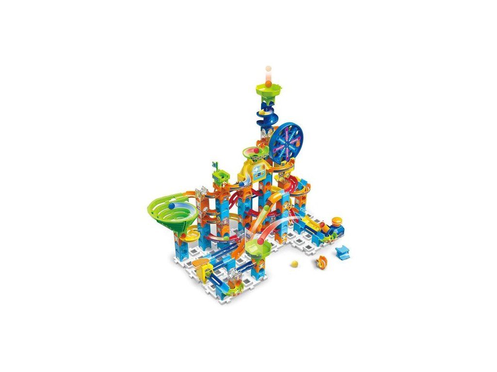 135 různobarevných dílků a točící se ruské kolo. Součástí je i vířivý kužel, který spouští hudební a světelné představení. Vyzkoušejte vzrušující rampy, rychlé dráhy, extrémní vystřelovače a základny, které se snadno spojují dohromady.
