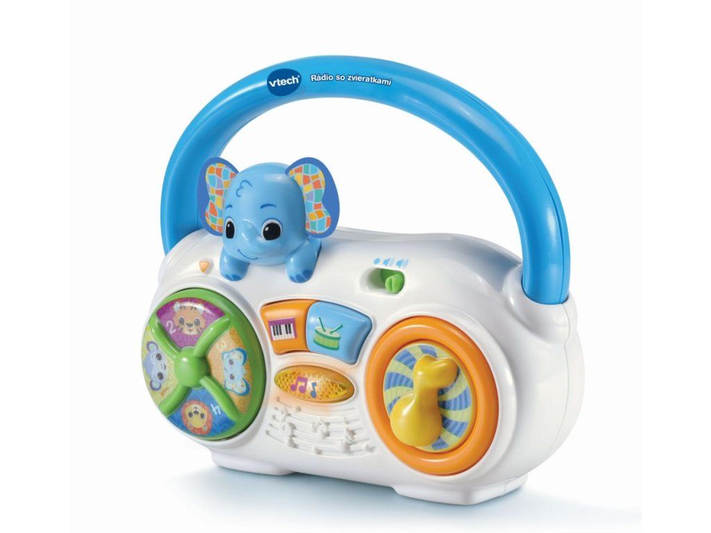 Hračka Rádio se zvířátky od VTech® rozvíjí hravým způsobem hudební cítění dítěte. Obsahuje tři písničky a 30 poutavých melodií ve stylu popové a country hudby. Otáčením kolečka se zvířátky děti poznávají čísla, názvy a zvuky zvířátek. Po stisknutí tlačítek s pianem a bubnem jsou slyšet zvuky nástrojů a melodie!