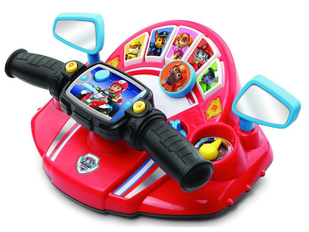 Tlapková patrola - multifunkční řídítka - Tlapková patrola jde do akce! Interaktivní výuková řídítka. Na výběr 3 herní režimy (čtyřkolka, sněžný skútr nebo vznášedlo), učí poznávat barvy, počítat, trénuje paměť i postřeh, učí poznávat strany i základy dopravní výchovy. Zdokonaluje motorické dovednosti dítěte, obsahuje více než 200 slov a větných spojení.