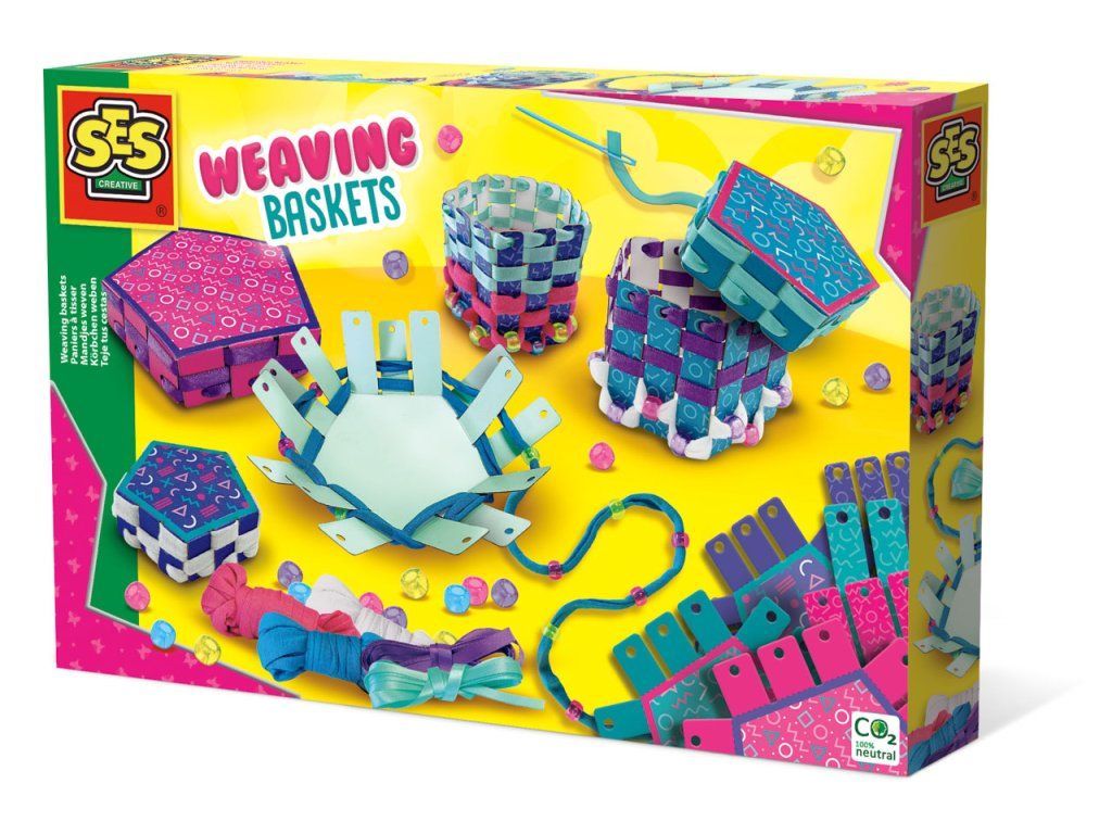 S touto sadou se snadno naučíte plést košíky. Použijte papírové košíky jako základ a upleťte ty nejkrásnější košíky pomocí bezpečné plastové jehly a tříbarevné příze. Popusťte uzdu své kreativitě a ozdobte košíky korálky a saténovými stuhami. Praktické pro schování vašich malých pokladů. Sada obsahuje: 6 papírových dílů na košíky, 3 příze z tričkoviny, 2 saténové stuhy, korálky ve 4 barvách, plastová jehla. Věk: 5+