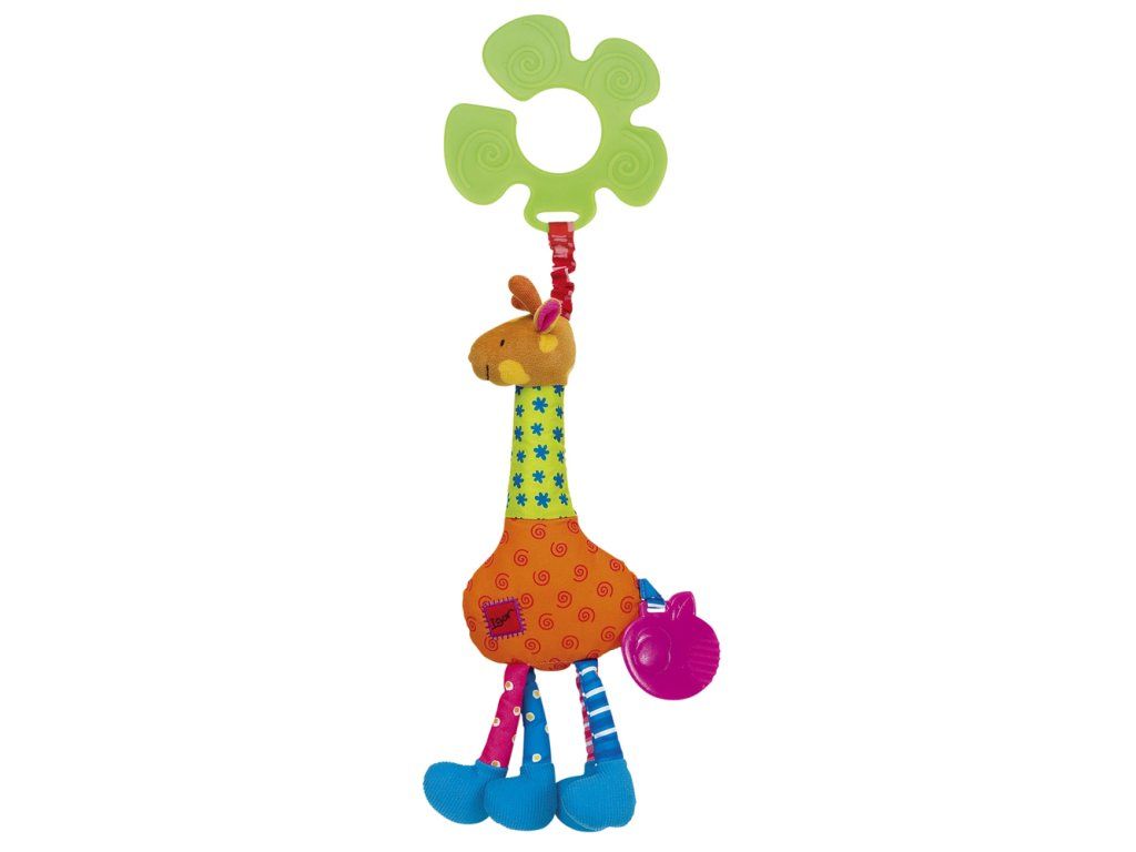 Žirafa na zavěšení na kočárek nebo nad postýlku upoutá vizuální, hmatové i sluchové smysly dítěte. Žirafa je ušitá z různých materiálů a při ohmatávání šustí.