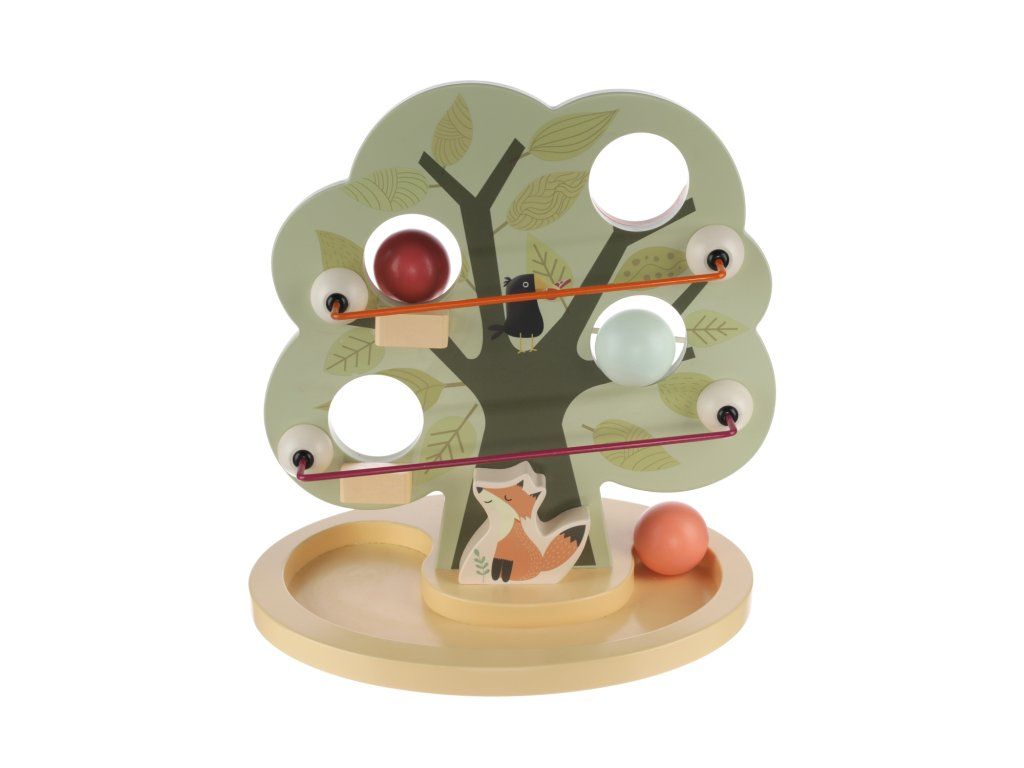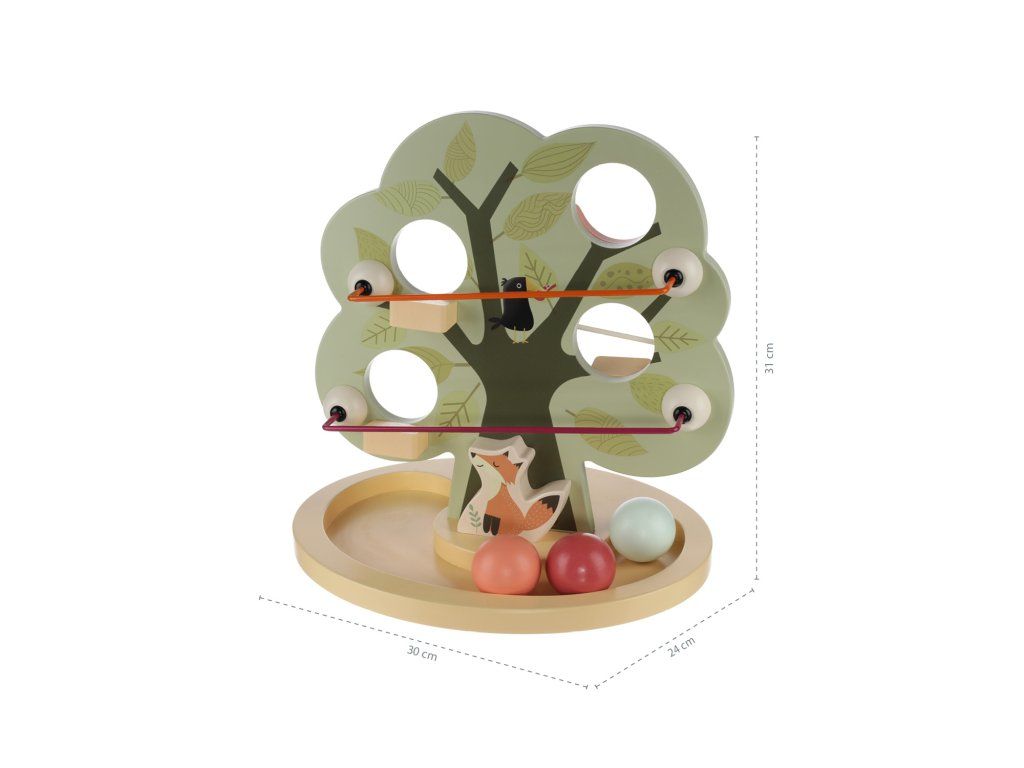 stromu má několik otvorů pro prostrčení míčků. Drážka ve spodní části
