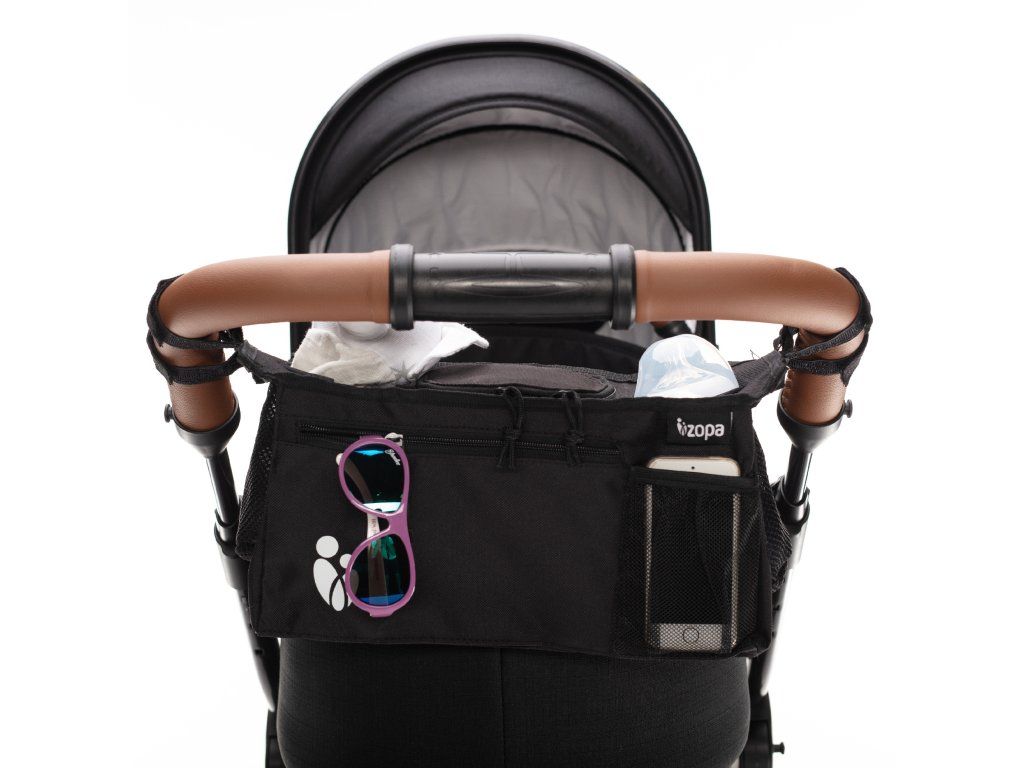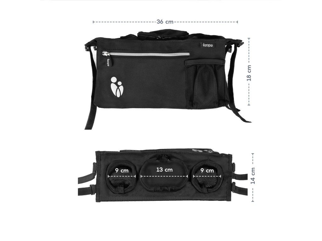 Praktický a přehledný organizér na kočárek je ideální na procházky s dítětem. Přední část organizéru obsahuje velkou kapsu na zip na drobnosti, které by maminka během vycházky mohla potřebovat. Stejně tak je přední strana vybavena kapsou na mobilní telefon ze síťoviny, takže má maminka vždy přehled, když se něco s telefonem děje i přes tichý režim. Dítě tak nic nevzbudí. Ve střední části se nachází velká kapsa na zip pro uložení potřebných věcí. Na bočních stranách má dva držáky na nápoje.