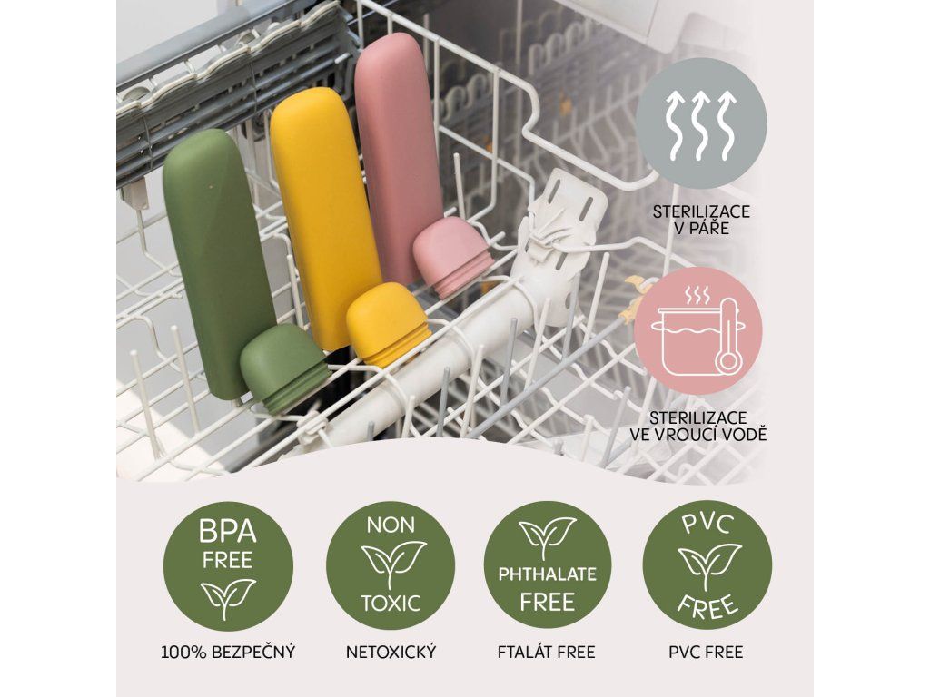 Vezměte si své oblíbené příbory kamkoli s sebou díky našemu praktickému silikonovému pouzdru. Kvalitní potravinářský silikon zajišťuje, že je pouzdro hygienické, odolné a snadno se udržuje. Chrání vaše příbory před poškozením a zajišťuje jejich čistotu v každé situaci.